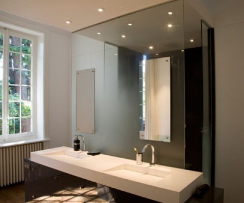 paroi de douche avec dépoli effet buée et miroirs en applique | Agrandir